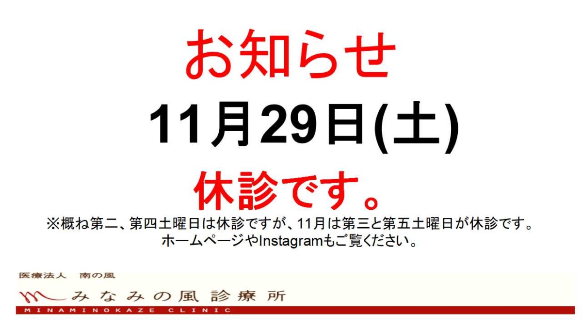 11月29日(土)は休診です