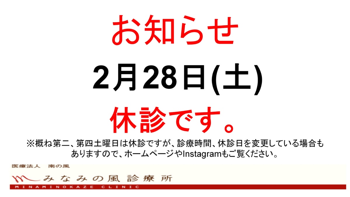 2月28日(土)は休診です